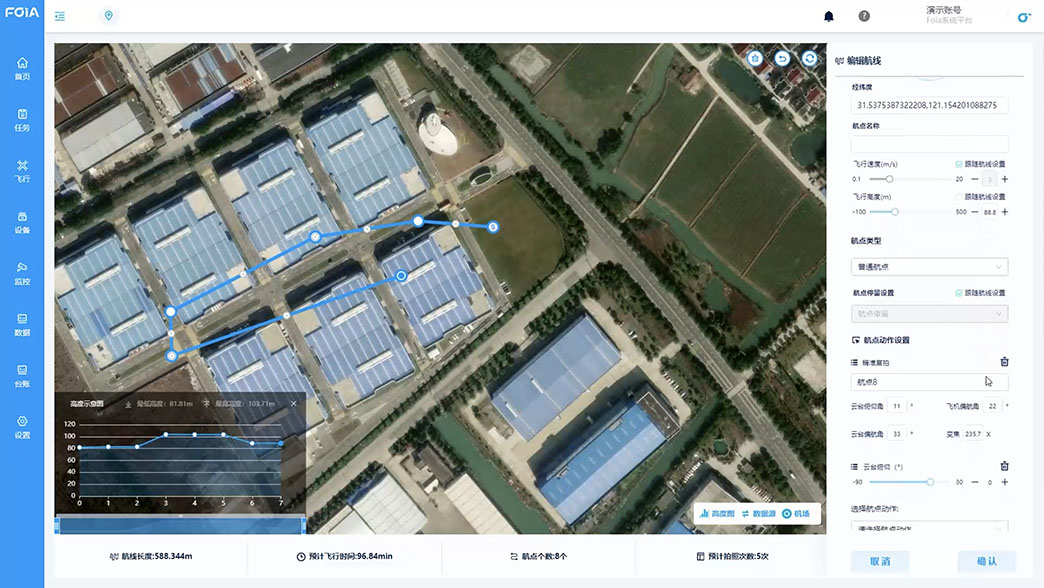 簡單的任務(wù)創(chuàng)建即能下發(fā)自動飛行指令,便捷的前端控制系統(tǒng)及清晰的飛行視野與數(shù)據(jù),服務(wù)于用戶的指揮與控制。