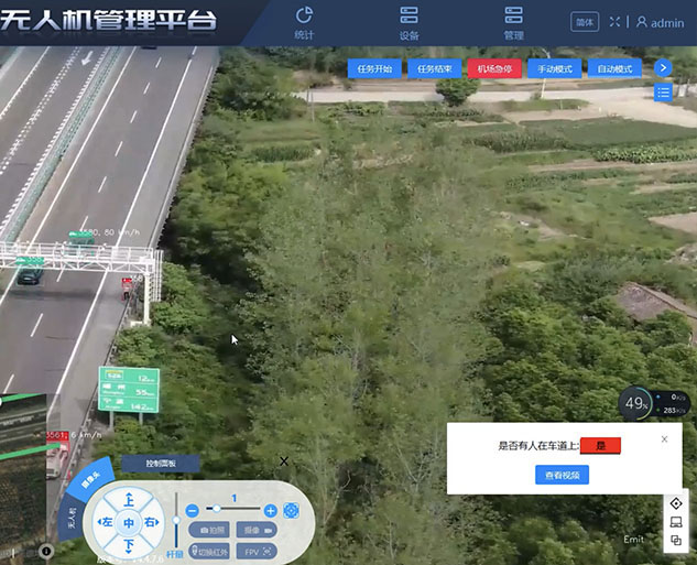 指揮中心隨時可手動接管無人機,靈活控制巡查任務。警員遠程喊話,對異常停車、行人上高速等違法行為進行遠程干預。