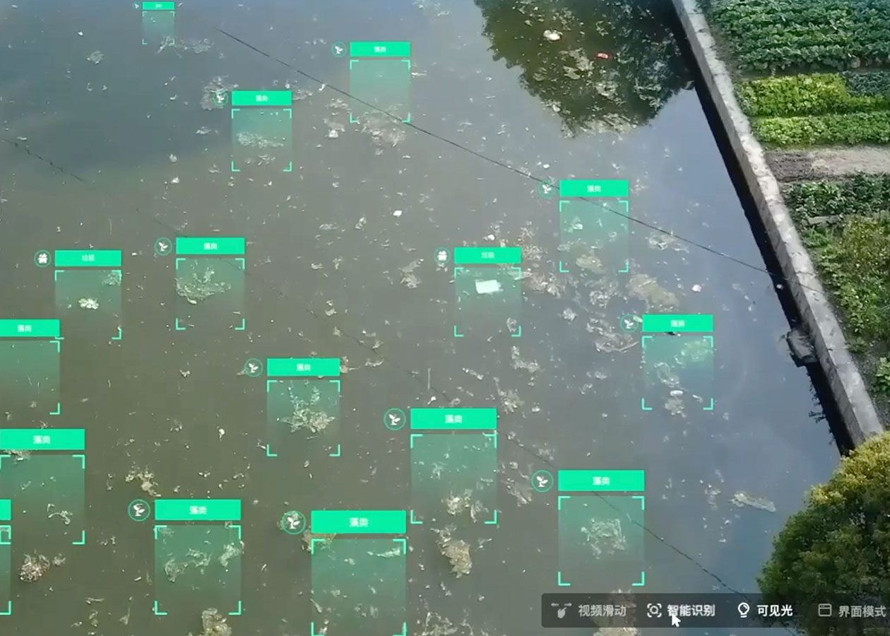自動AI識別河道漂浮物、船只、排污口等目標。