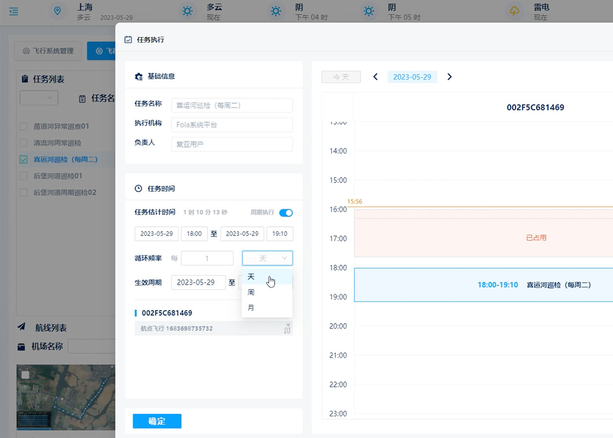 創建河道任務,規劃河湖巡查航線,設定巡查時間,實現自動巡查,也可手動遠程巡查。